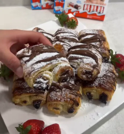 - Chocolate Drizzle: Melt some extra Kinder chocolate and drizzle over the croissants for an extra chocolatey touch.