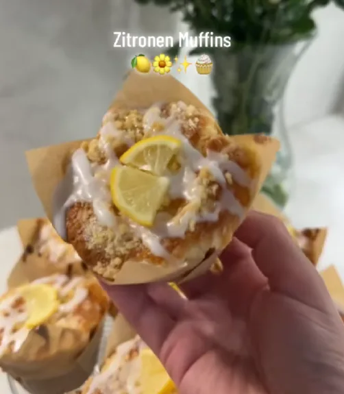 - Mix powdered sugar with lemon juice to make glaze, then drizzle over cooled muffins.