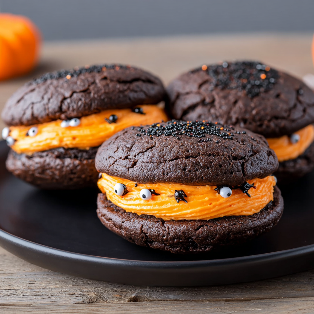 - Dessert Bar Star: If you’re creating a full Halloween dessert bar, place your whoopie pies on varying height stands to create visual interest. Pair them with other spooky treats like “dirt” cups or ghost-shaped cookies.