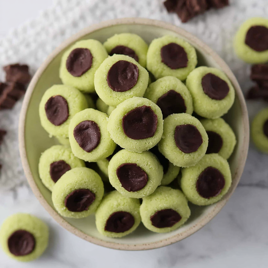 - Shape Your Buttons: Take about a teaspoon of the mint dough and roll it gently between your palms to form a small, neat ball. Place each little ball onto your prepared parchment-lined baking sheet. Repeat until all the dough is used up.