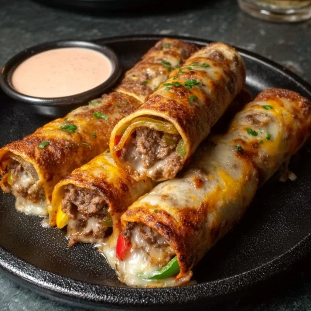 Cheesy Beef and Peppers Roll-Ups