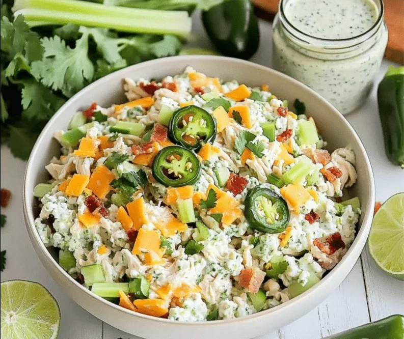 Think of it as the lovechild of jalapeño poppers and chicken salad, with a little keto magic stirred in. Cottage cheese steps in for creaminess (yes, it works and we’ll show you how!), crispy bacon adds smoky depth, and a tangy, herby dressing ties it all together like a flavor fiesta. It’s creamy, it’s crunchy, it’s cool, and it’s hot (literally)—the kind of dish that makes you forget you’re even on a diet.