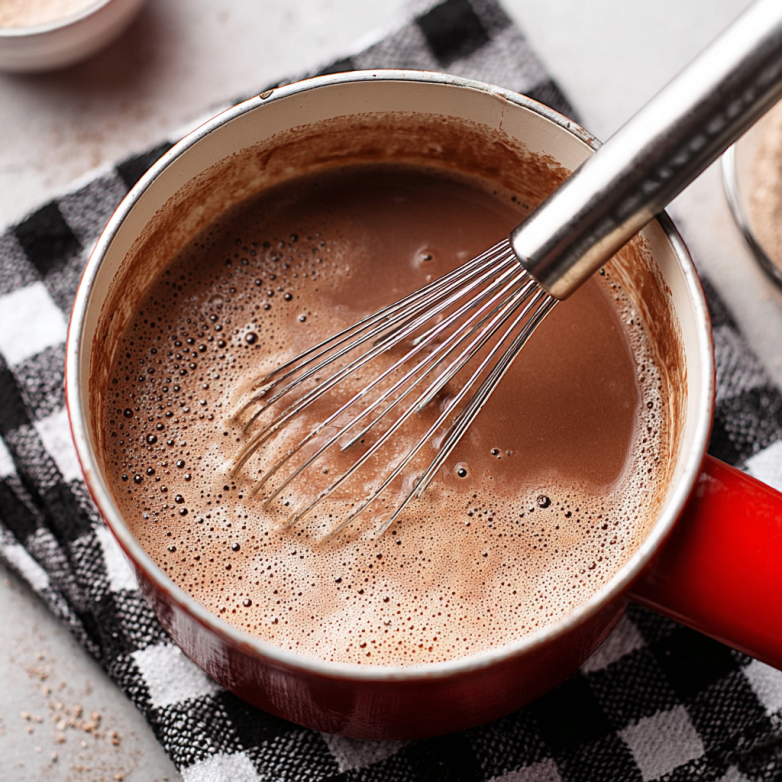 - Once steaming, whisk in the cocoa powder and sugar-free sweetener until the mixture is smooth and well combined.